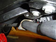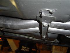 9. Slide the rubber muffler hangers off. The hanger shown is towards the front of the muffler.