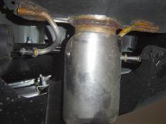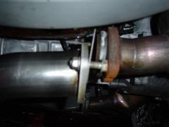 6. Loosen the four nuts most of the way at the two front flanges of the factory exhaust, do not remove the nuts yet.
