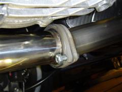 25. Make sure to tighten the four bolts at the muffler/x-pipe joint first. Next, tighten the front four exhaust flange bolts at the front of the car. Next snug up the center support bolts and finish by tightening the clamps at the connection of the x-pipe and front pipes.