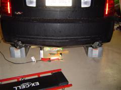 5. Support the rear of the Cadillac CTS V on Rhino ramps. Jack up the front and support the front of the Cadillac CTS V with jack stands (or another set of Rhino ramps).