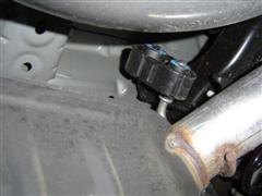 21. Place the mufflers under the Cadillac CTS V. With the six rubber muffler hangers off the car, lubricate the holes (I used a squirt of Zaino Z6). Install the three rubber muffler hangers on each muffler. Next, lift the muffler up into position and slide the front muffler hanger over the hook on the car. Then slide the two rear hangers onto the Cadillac CTS V's hooks. Repeat for the second muffler.