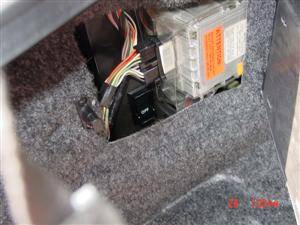 12. Place your new brake pads in place in the cradle and then replace the caliper over them securing the caliper in the proper position. (this is only necessary in the 1993 – 1996 models, 1997 – 1998 models have a one piece assembly and you have to place the pads in the caliper as you slide the caliper down onto the rotor) Remove the rope you used to tie the caliper up.