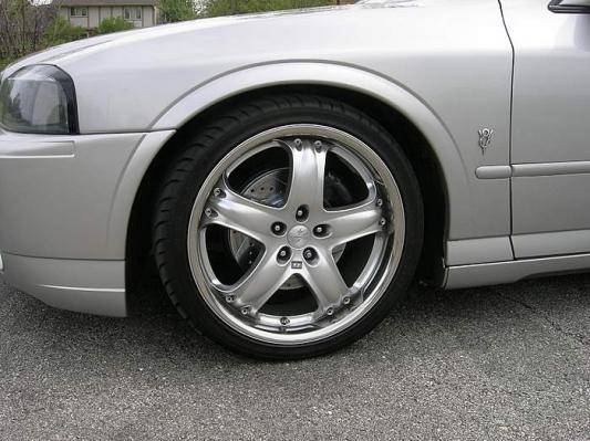20 inch Jaguar wheels w- 245/35 tires/McLaren Grill/ Light Tint/Intrax Lowering Springs/Self made Angel Eyes/Cross Drilled & Slotted rotors with black painted calipers/HID's in headlamps and fog lights/Ford V8 Badges.