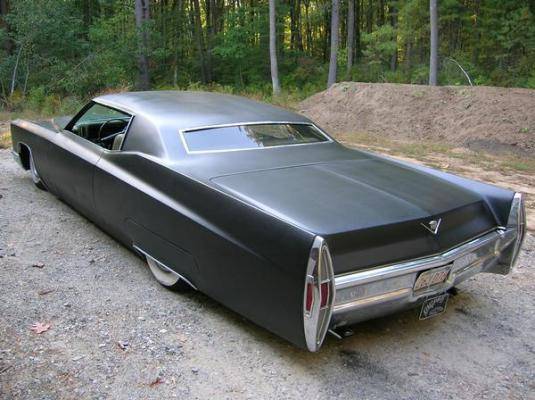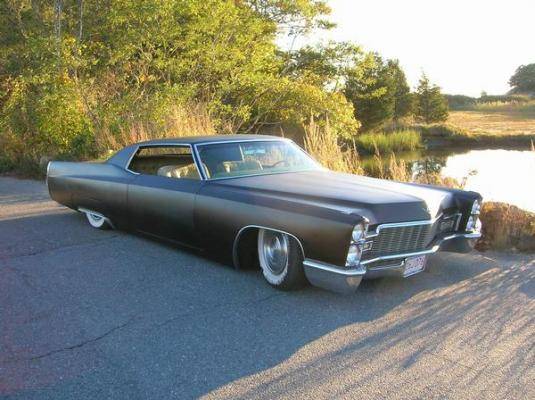 68 Caddy Coupe DeVille, i got it in December of '06. It needed a lot of work and wasnt drivable. I chopped the roof, shaved the side trim, handles, hood vents and some other things, bagged it, etc..