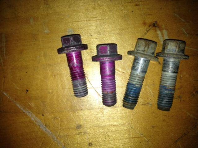 My calipers had the factory bolts, stainless lines, Red Stuff pads with zero wear (I got a good deal).
