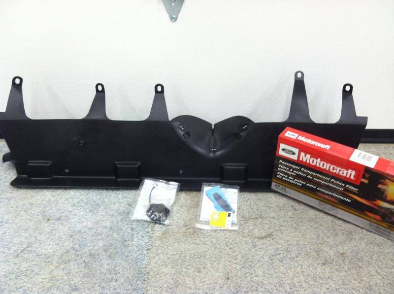 New air deflector, cabin air filter, Lincoln emblem, power steering cap.