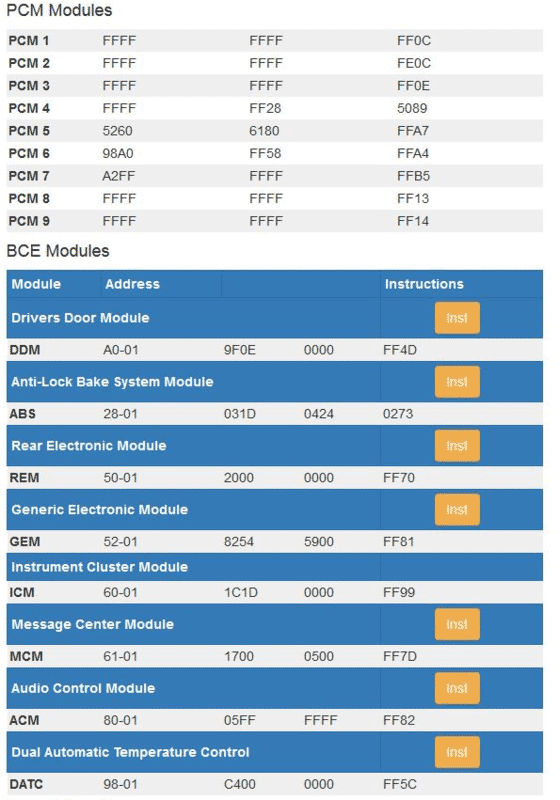 Enter your vin and then paste as screenshot what you got there. Those are basically the AS BUILT defaults of your car . I will compare with mine and test some changes. Eventually this will solve the DRL and a few other things who knows :) So feel free to paste your AS BUILT defaults here . And its not only for you everyone who sees this please paste the screenshot, this will probably help identify some differences. Meantime here are mine, i think the PCM part is not modifyiable but still.