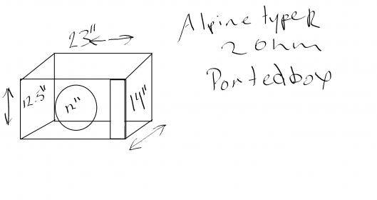 Hey I purchased a 2 ohm 1000 watt rms alpine type R and would like to build my own box. I would like the box closely tuned to the sub specs as possible but any type of ported box will do. I heard those ebay pre made LS boxes are garbage so i would like to replicate that box. show me your boxes if you want. heres a quick sketch i made on my surface pro using paint lol..