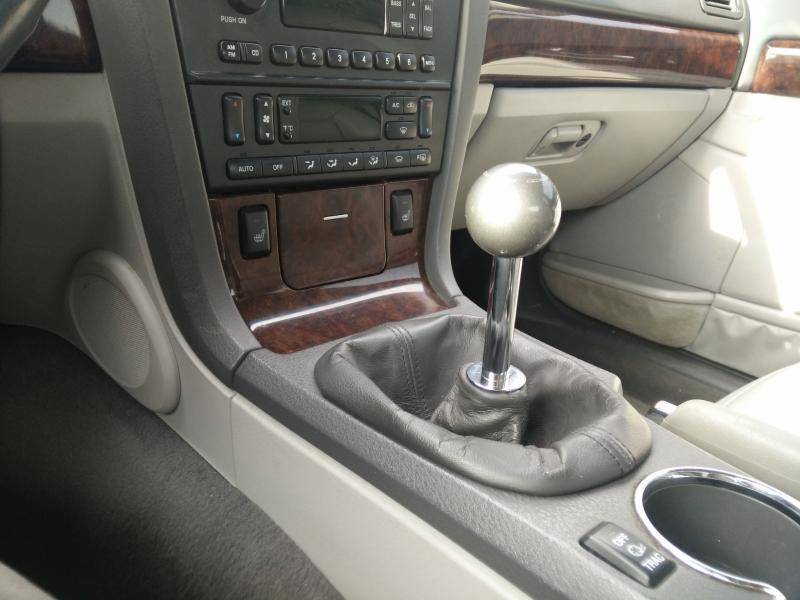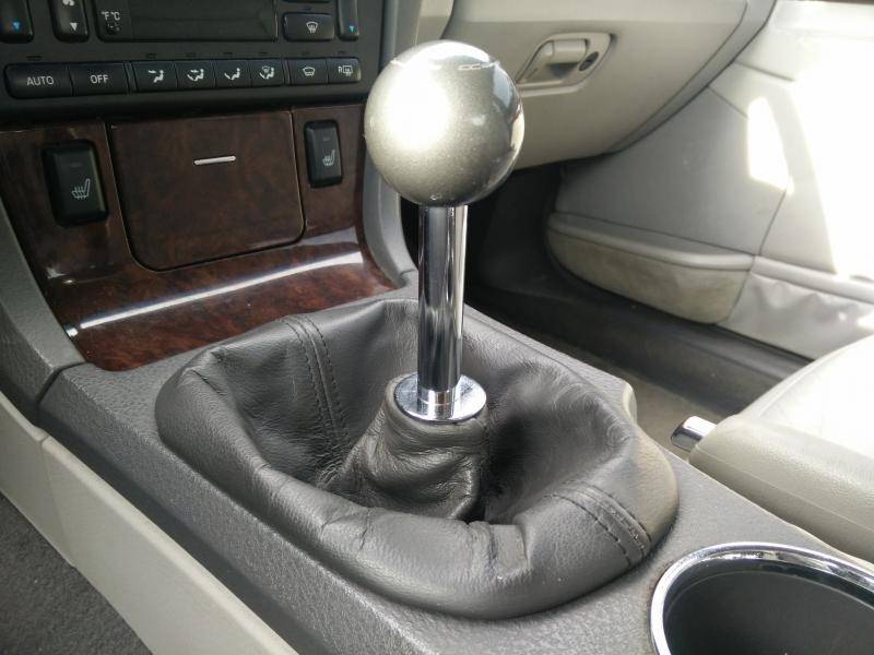 OEM shift knob got boaring so I changed it. Cut off the shift rod tip and thread it to M12X1.25. Need a rasp file to take some material off the shaft to closer to 1/2". Replaced the chrome gromet with a 1/2" chrome washer from ebay. Scrwed in a 3" shift rod extension. Got a weighted knob from ebay. Finally slipped a chrome sleeve cut from a chrome towel bar to the proper length. I think it looks cool.