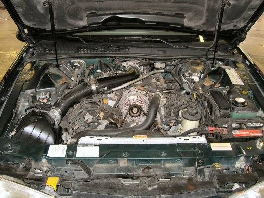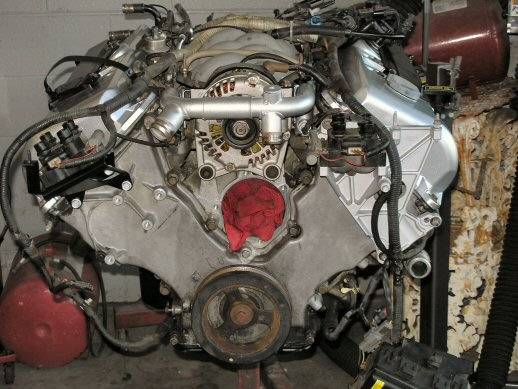 The painted valve covers look really clean, the only other thing I notice is the stock 4.6 dohc harmonic damper... looks a little too rusty?