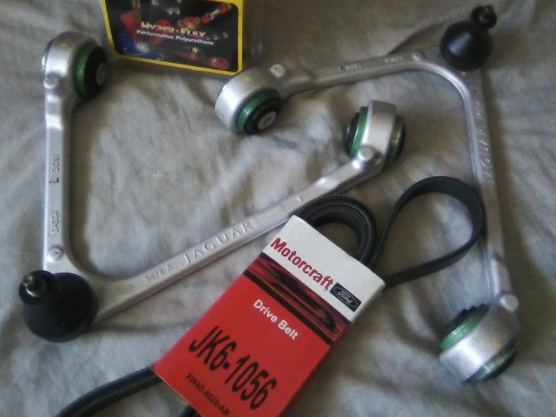 Someone recently bought just the large bushing for the lower arm. I think you can find it on eBay for the Jags. No dice on the small bushing.