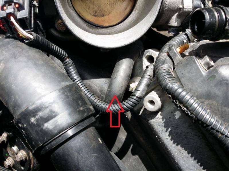 Okay, 8276 does not run under the manifold. That's the engine air bleed hose. It goes from the top of the cross over pipe assembly to the top of the degas bottle. (It can be replaced with cut-to-length hose.)