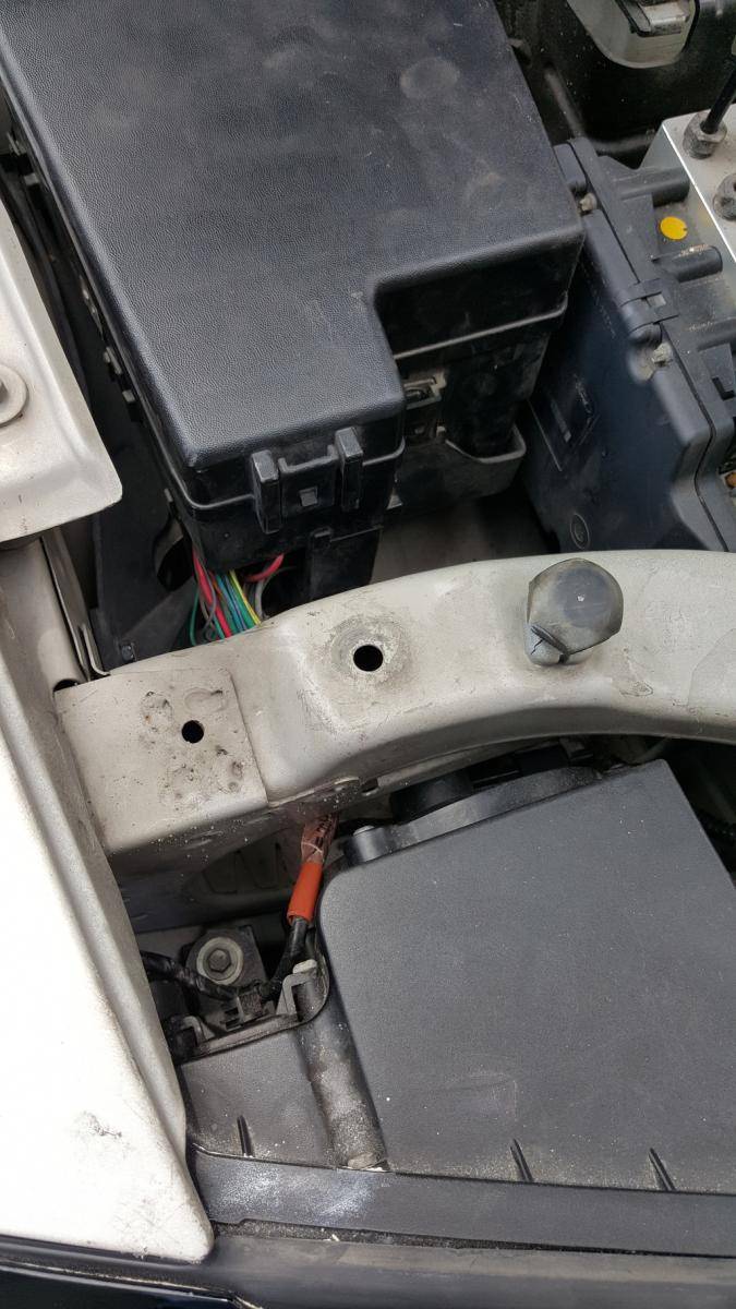 The wire loom to the under hood fuse panel has to go thru the opening so the headlight mounting bolt will go in without pinching the wires. You dont have to wire the lights to the fuse box. Im sure it can be done another way but thats how we did it. See before and after pics above