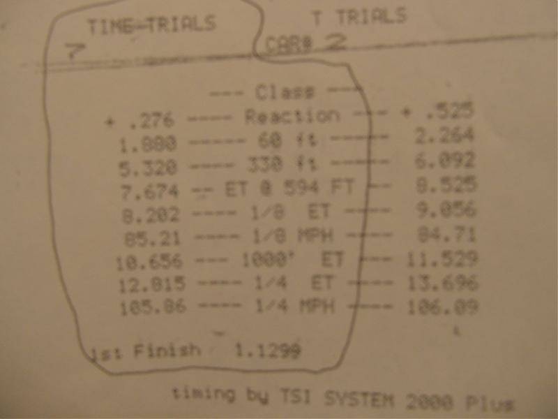 Ran 12.8 @ 106MPH WITH A 1.89 60 FT TIME.