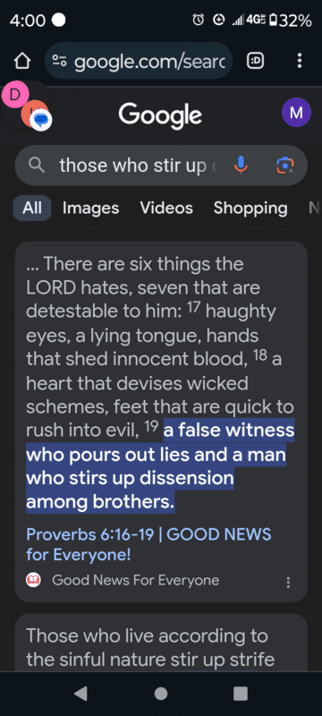 'A false witness who pours out lies and a man who stirs up dissension' is exactly your hero Trump. Have fun voting for him a 3rd time.