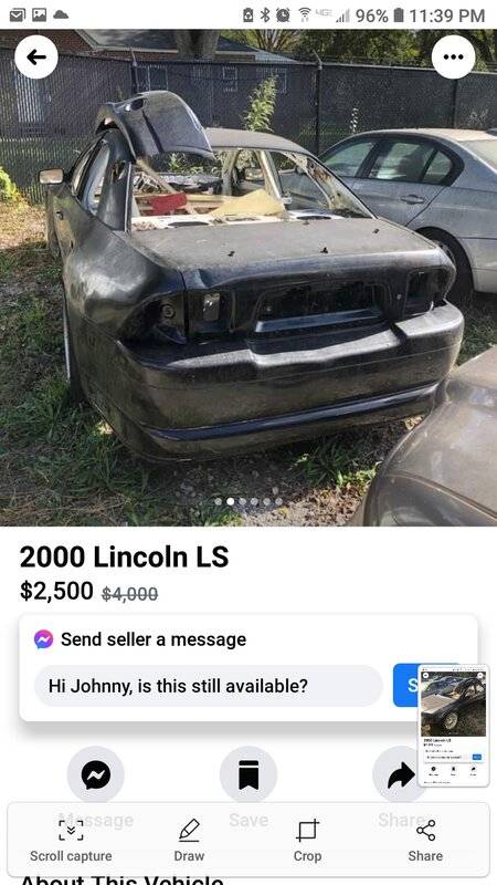 The C-pillar fuel cutout and roll cage say it's the race car, guy on FB says (the seller says?) this was a second build that never got a drivetrain, second to the white/red two tone