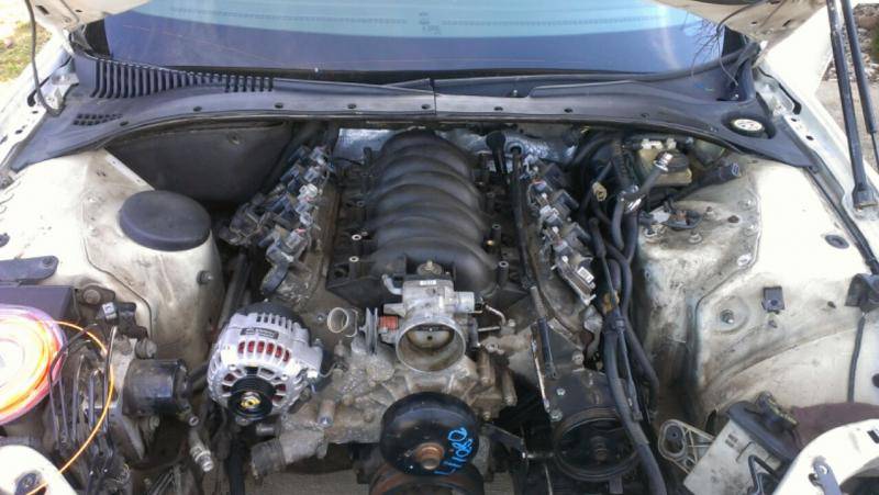 I'm starting my LSx build on a gen I LS factory V8 auto that I picked up cheap due to it having a bad motor and a slipping transmission. I've done some digging in the LS1 swapped LS that's been on this forum for a while, figuring out what issues are going to come up, but it seems pretty straight forward. I've got the engine electrical disconnected from the body and everything seems to still work.(power windows/seats, lights, wipers/delay, climate control, etc) Stuff not working with the wiring unhooked was my biggest fear when I bought the car for a swap. I'm aware that the dash and gauges will not work but I'm ok with the aftermarket gauge route. So once I get the motor out the fun begins. I'm going back in with cast-iron LS series motor out of a truck and an automatic trans.