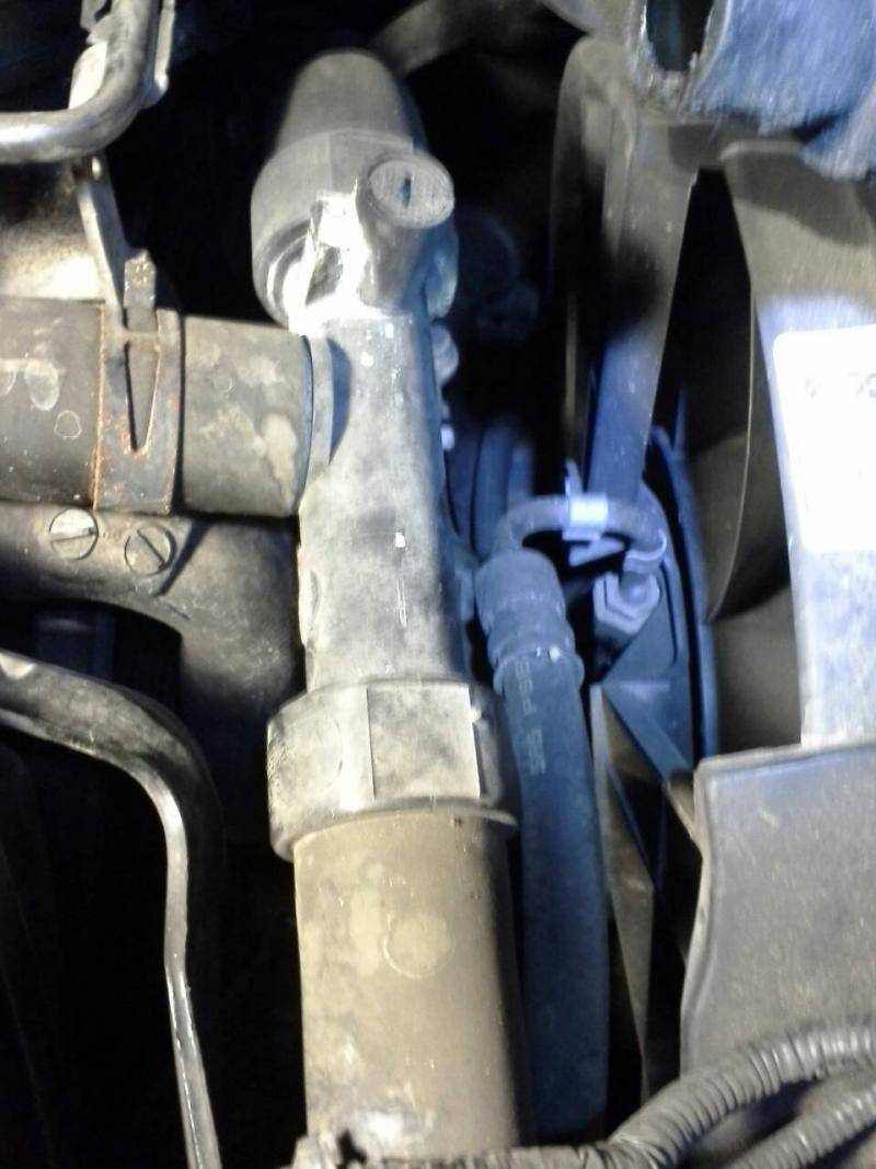 Two, the car has a large engine coolant leak. A half-gallon to gallon must be replaced every day (clearly, it is currently parked). I cannot see the source after light inspection, and neither could my mother's mechanic. It seems to be coming from the rear area of the engine. Is there a likely common culprit there that I should seek out?