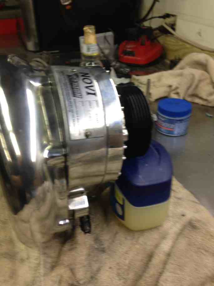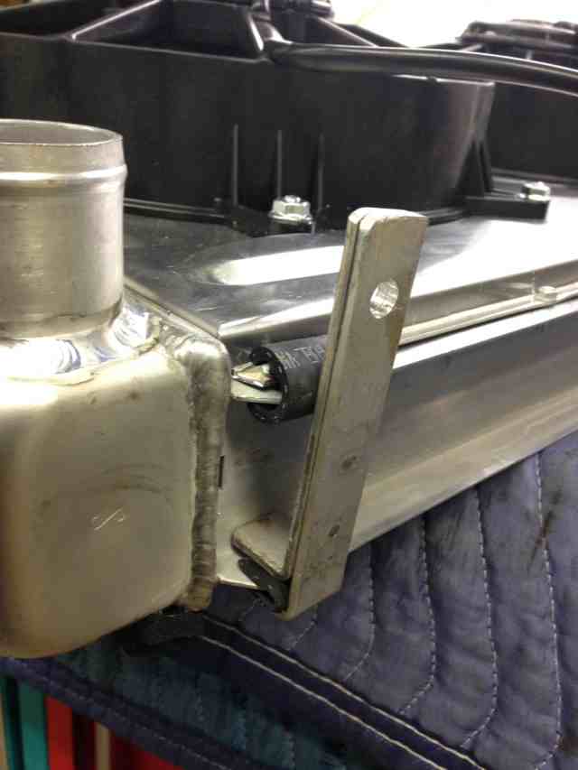 While the paint was drying, final assembly of the cooling system. Went old school and drilled a 1/8" bleed hole in the thermostat and stuck a pill to hold it open to help purge air.