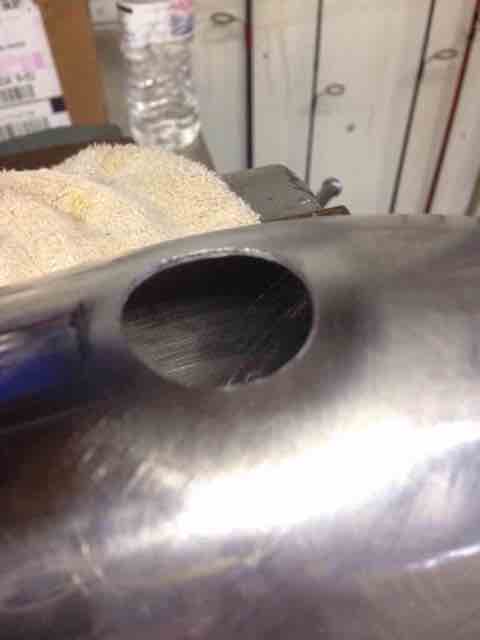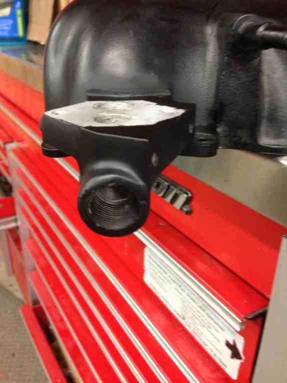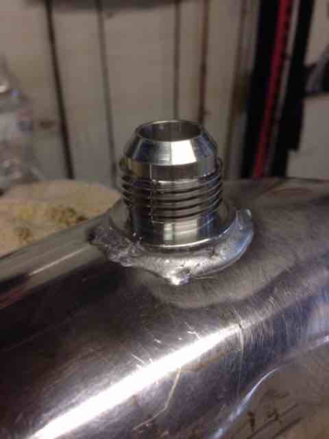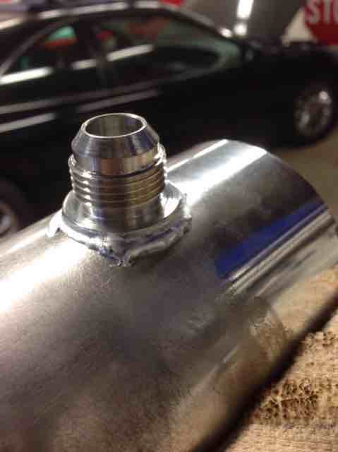 I pulled the tube out of the IAC port. Tapped to 1/2 NPT to prepare for the 10AN-1/2NPT adapter. I had to cut the deeper part of the hole with a carbide cutter to get enough depth for the tap. I touched up with flat black to match the powder coat. I did a test piece with semi gloss and flat black, I think eggshell may have matched a little better but I didn't have any.
