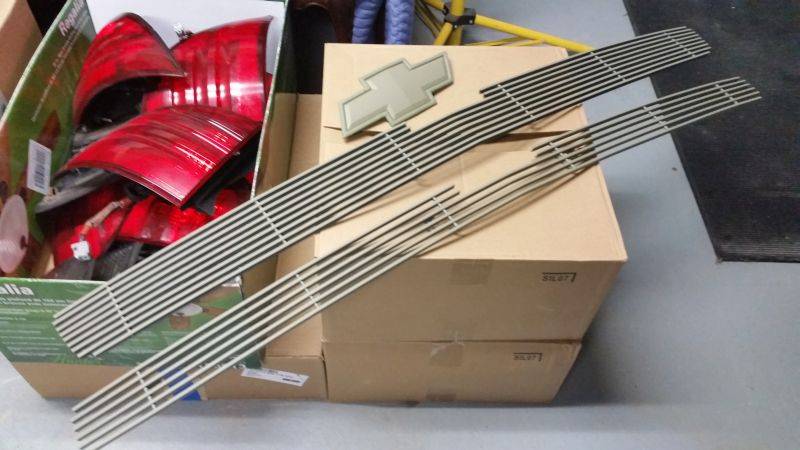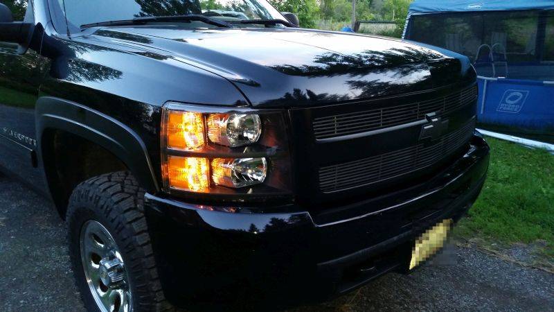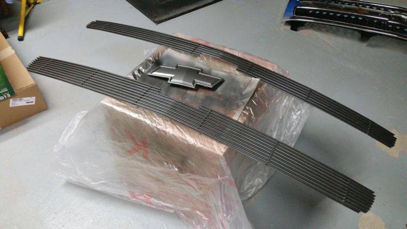 Hopefully by end of day, the grille will be satin black, the grille billet inserts and bowtie a graphite gun metal, covered with clear. New headlamps and my new LED's installed.