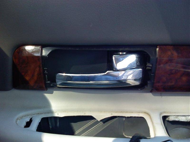 So my rear door just stopped working one day and it finally started pissing me off enough to try and fix it. I have the black cover piece off and when i open and close the handle i can see the wire moving with the handle. Also when i have the handle in the open position and i press on the cable it is tight. One main question i have is does the wood grain panel come off easily or at all. Contemplating on just breaking it off if not, ill just find that piece from one of these parts cars. there is nothing i can do to remove the door panel since the screws are hidden by the seats and rear wheel well. Any ideas, help would be appretiated.