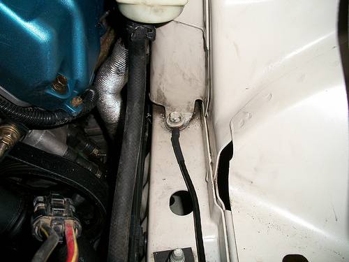 Run the two signal lines from the fan to the passenger fender. The Green wire on the fan is Fan Power and the White/Black is Fan Signal.
