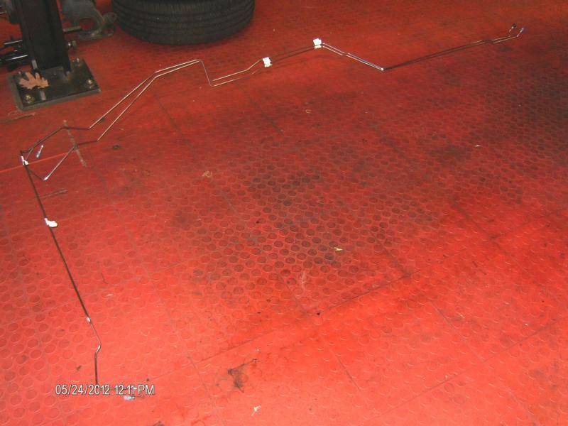 Mine rusted out too. Instead of running the line to the right rear wheel up and over the rear end, my father and I spliced the line just in front of the door. You'll see a cross-member about a little more than half way the door's length. We ran the line along that cross member and right to the other side and into the caliper. So much easier!!!