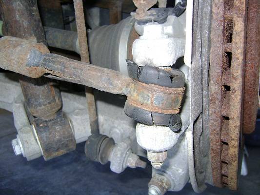 4th picture from the top, boot is ripped on your sway bar end link. I'd probably add it to the list of things to replace. As rusty as they look, I can't imagine they are in good shape if the boots are ripped.