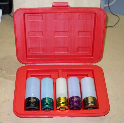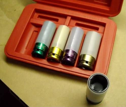 Thin walled deep sockets with plastic sleeves and inserts so you can remove your wheels without damaging the wheel's finish or the top of the lug nuts. Never used - in blow molded case.