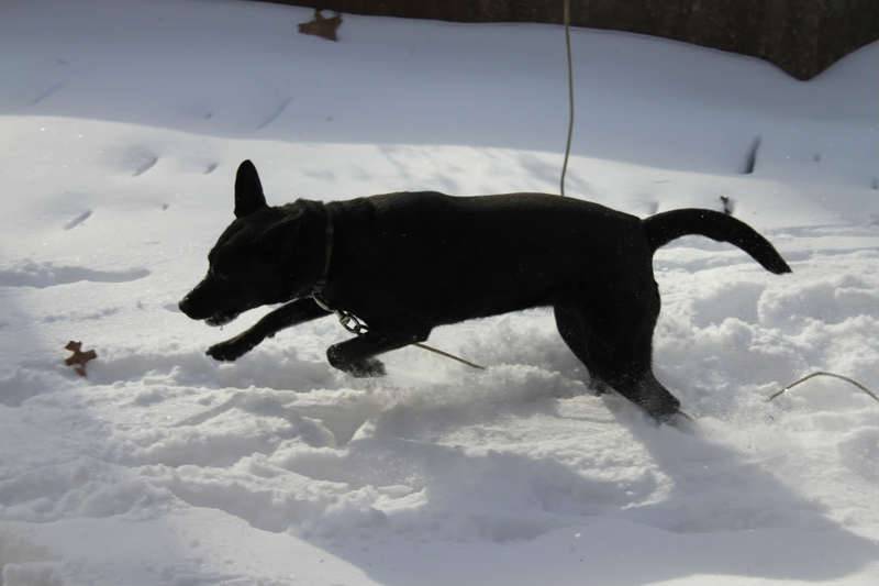 Most of the snow was gone from the last storm, but we got about five or six inches of new snow today, so it's all nice and pretty outside. The area between my house and garage looked like a freaking snow globe--these great big snowflakes were just swirling around, sparkling in the sun. It was incredibly beautiful, but none of the pictures I took adequately captured the scene...
