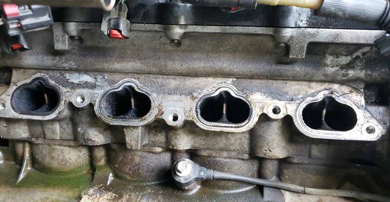 Every thing was cleaned about 5 years ago, new fuel injectors too.. just had new cats put in and O2 sensors are fine, no vacuum leaks detected.. still haven't diagnosed the intake manifold flap, hoping this is the cause of the complete loss of power and loud popping back fire noise I'm hearing when trying to accelerate after slowing down, and maybe even the stalling?Stalls can happen when your intake system starts to get fouled up... From the throttlebody into the heads ... I just finished up yanking mine and cleaning it like a surgeon with 9 inch curved needle nose, parts carb and choke cleaner, and shop towels took me about 6 hours it was filthy... Air idler and vacuum leaks from those pesky rubber grommets on top of the intake manifold... All of those will effect preformance, mpg, and longevity of the vehicle. Not to mention a dirty engine holds heat longer.... Dirt makes for great insulation... Take a weekend and strip the upper end down and clean it up real good... Should run better... If your heads look as dirty as mine from downstream of injector( this why premium gas and frequent oil changes are a must...) Then injector cleaner will do. However, from your throttle body back to the injectors its all scrubby dub dub.... Your egr when you get to it could have a chunk of coal in it that will need to be removed or just replaced, 0² sensors reading okay? If the upper looks like this the exhaust system (cats) could be just as filled with krud.