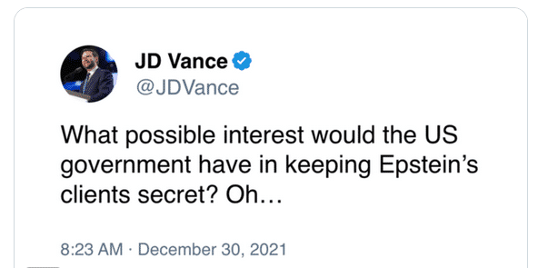 Trump and Vance buried the Epstein Client List to protect Trump and billionaire friends like John Paulson, Leon Black and Peter Thiet et al. Deep down inside, you know this too.
