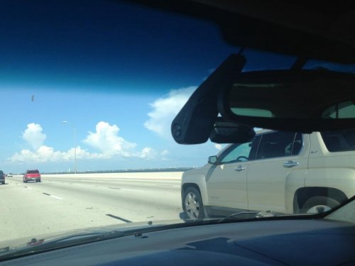 Here are some pics of the dash cam from my perspective. I couldn't get a good shot of it from outside the vehicle. I'll have to try in full sun. I always find myself parking under trees or in garages wherever I go. Black cars and the sun don't mix well. I'm sure you can identify.