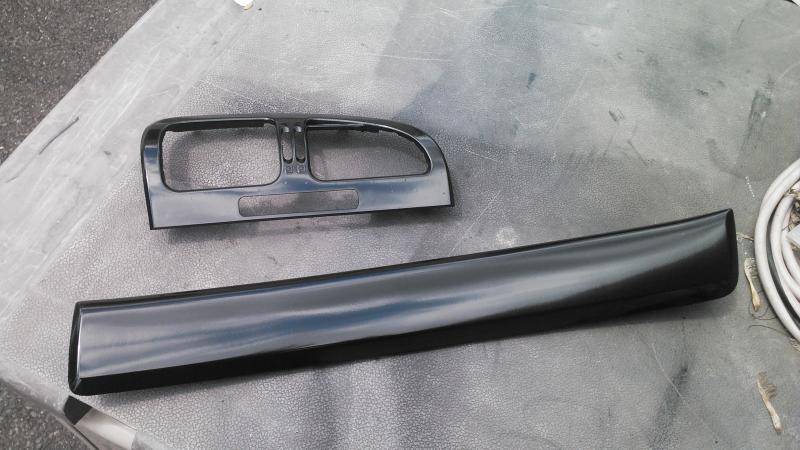 Finally got a replacement center vent after hunting through eBay (new goes for $130!) and junkyards (always, always broken badly). I searched on a whim on eBay and found one for $46 shipped. it just has one cracked button post which is going to get swamped in JB since my superglue never seems to actually stick to ABS. Receiving it motivated me to try painting it and the replacement glovebox trim. I think I finally got the spraypaint technique down. It still needs a topcoat and it's not perfect, but it's definitely better. It gives me a confidence boost to try painting the chrome parts again