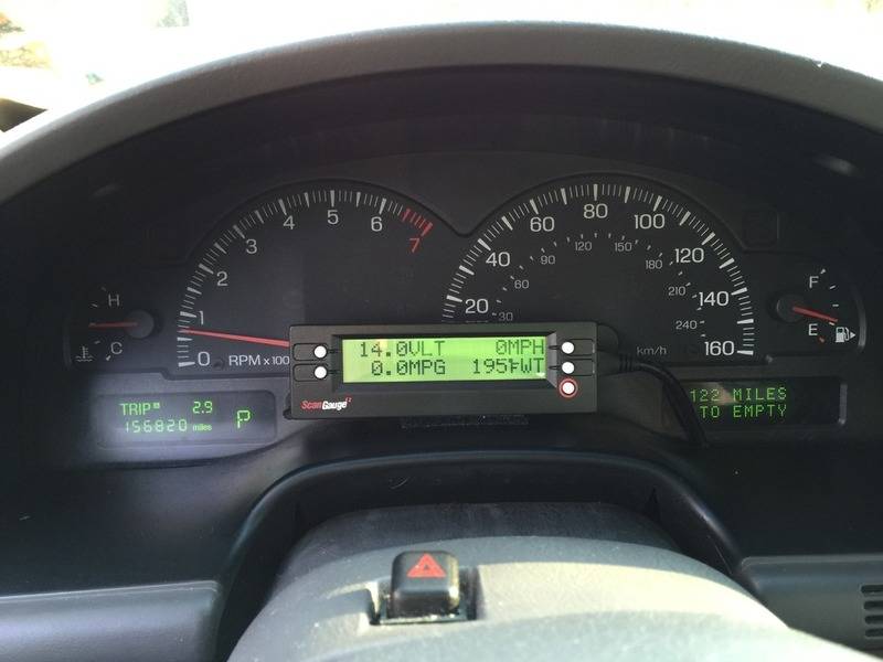 Added a ScanGauge II to keep a eye on the temp and voltage. Granted this temp was only after running maybe 15 minutes and 45 degrees out side, I have seen 210 and it below freezing outside down the freeway. Still can't get rid of that antifreeze smell even after cleaning the engine.