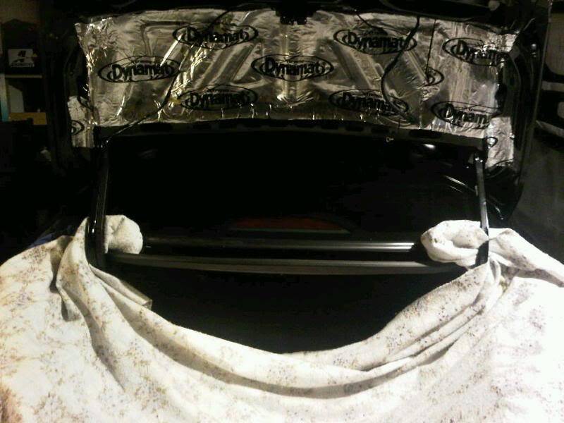 I bought a 12ft box of Dynamat ($80) for the drivers door (inner panel and out) and this is what I had left over for the trunk. I took the drivers side door panel off myself so they could paint the door and wanted to get some sound deadening on it before I reinstalled the panel. I used Raamat before and $80 got me enough to do the entire roof as well as the passenger door. The RAAMat was much thicker and felt like it would do the job better then the Dynamat but it's online ordering only and I needed to get the door skin back on today so I went for the Dynamat.