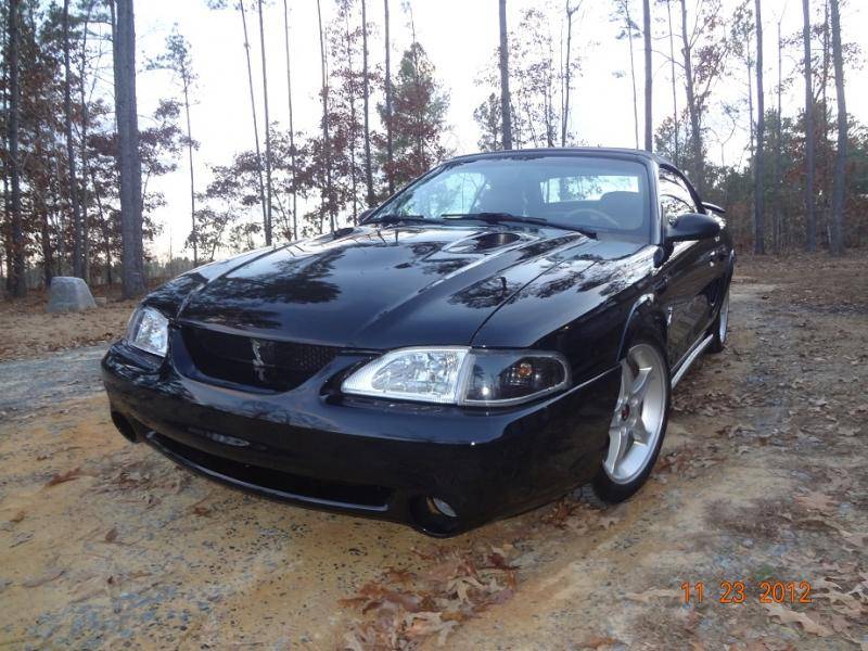 I will be going back to the body shop Monday or Tuesday to pick up the old front bumper cover, headlights and parking lights, and the (new) hood they didn't use. They couldn't use the new hood because it was damaged during shipping and (they said) the freight company wouldn't let them send it back because they took too long to report the damage. So I have a basically brand new Cobra hood that has some chips on three of the four corners. It's primer white and ready to be used. Anybody interested, send me a PM. I'll post pics when I go pick it up.