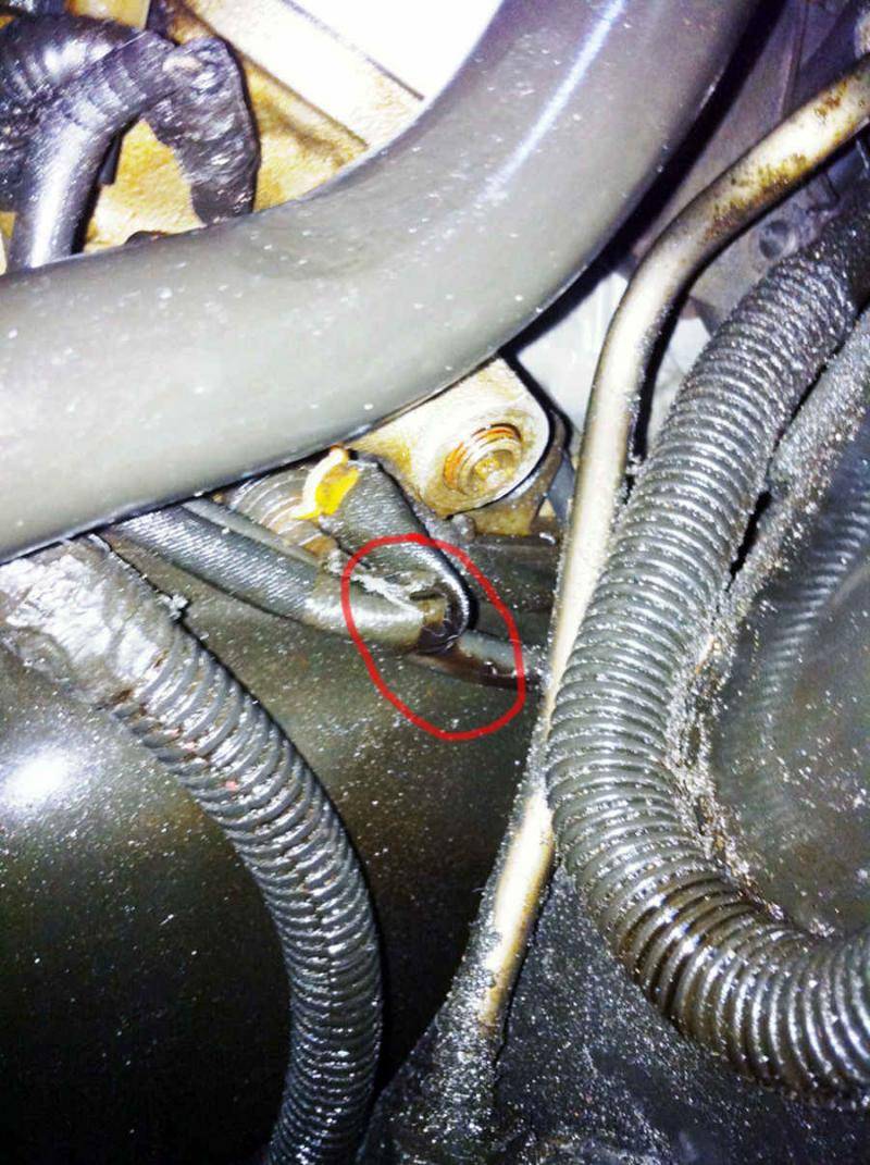 After starting her up, and waiting about 5 minutes of idling while under the car, it seemed to be 'oozing' out of one of the wiring jackets. Oil is not falling onto it either. It's coming out of this jacket. WTH??