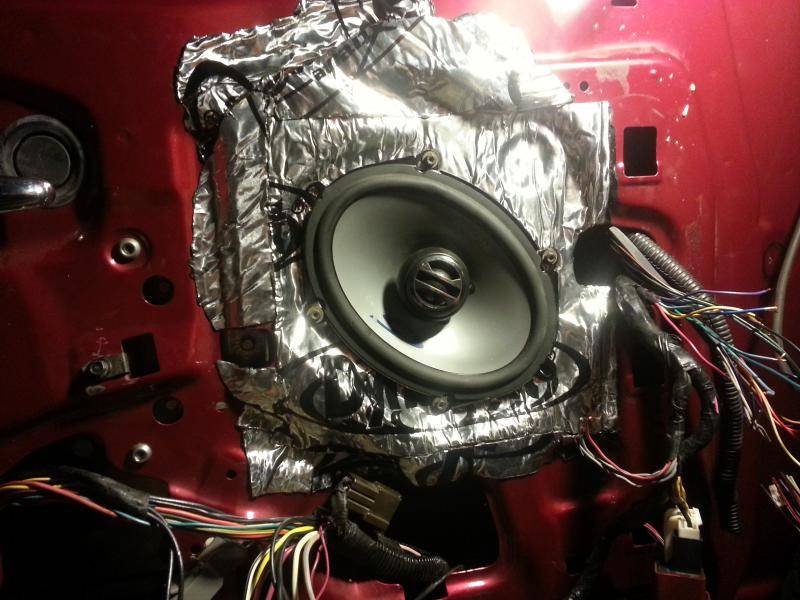 I re-wired my Alpine speakers last night so instead of going from the head unit to the factory amp to the speakers, it's a direct line. Also applied dynamat around each speaker. Also installed some 97 door strikers I had laying around. Working on my Gen II mirror wiring tonight.