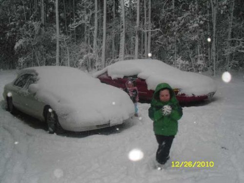 My friend Eds house. First pic, there is a Fox Mustang by the fence under the snow.