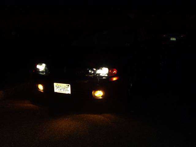 I've had the Nokya yellow bulbs installed for about a month now and I love them. The ouput is actually pretty decent, but they are mostly just for the look since the HIDs put out enough light. Heres some nice blurry pictures for you.